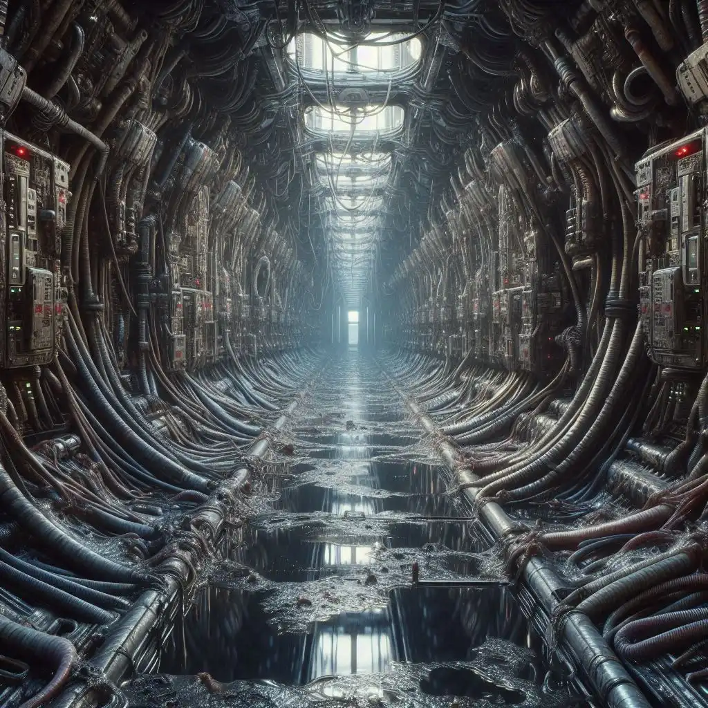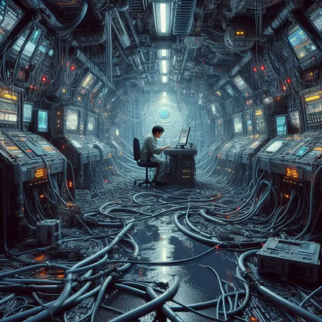Keiji, desesperado por entender, decidió sumergirse más profundo en la matriz de datos. Volvió al núcleo de la IA y extrajo una sección de registros de cámaras internas. Durante los eventos previos a la masacre original.