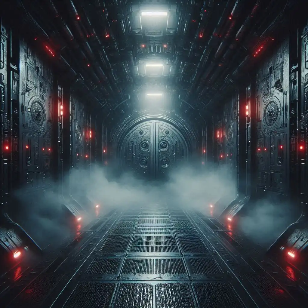 Horas después, en la sección B31, la atmósfera era densa como si algo viviente respirara desde los muros. Vael, Elira y los dos tripulantes restantes, Kell y Rho, habían avanzado hasta el final del corredor. La compuerta, marcada con el código “SINGULARIDAD-01”, se abrió con un gemido mecánico que sonó más como un lamento que como un acceso.