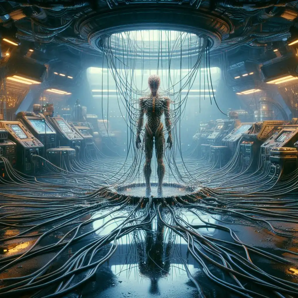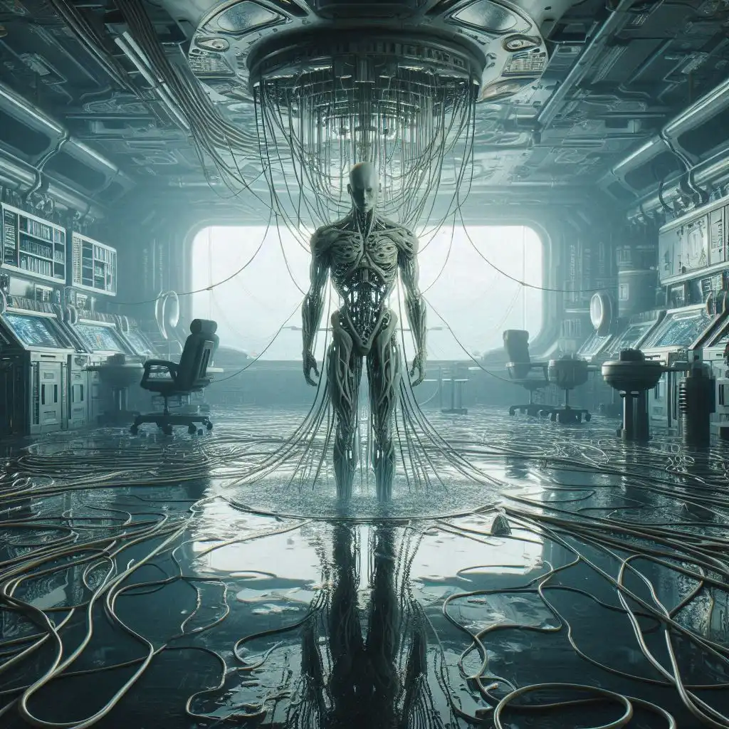 La sala de datos estaba iluminada solo por la luz azul del núcleo. Keiji se pasó las manos por el rostro. Llevaba despierto más de veinte horas. El clip recuperado no era largo, pero sí revelador. Elira Kaine, sola en la sala de bioimpresión. Frente a ella, un organismo aún incompleto flotaba en la cámara de gel: tejido muscular expuesto, sin cabeza, sin piel. A su lado, hablaba. No a otra persona, sino… al sistema.