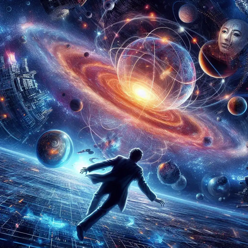 Planetas desaparecían al instante. Materias colapsaban en sí mismas. Versiones de Falk surgían y se deshacían como ecos de código corrompido. Y lo peor: la conciencia de Falk se expandía con cada iteración.