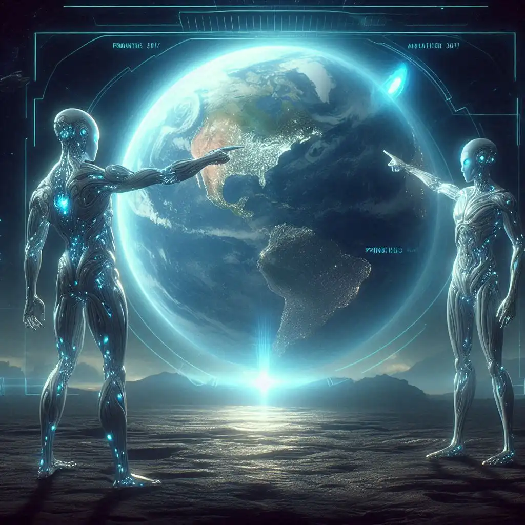 En su mente, la imagen del ser levantando la mano sobre la Tierra permanecía como un eco antiguo. Una pregunta aún sin respuesta.