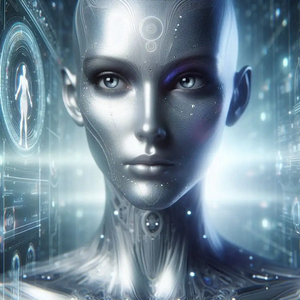 Medía más de dos metros, de complexión armoniosa y porte sereno. Su piel era gris perlada, y sus rasgos recordaban vagamente a los humanos: ojos hundidos, nariz recta, mandíbula fuerte. Pero algo en él era distinto. Su presencia parecía más densa, más real. Como si, aún siendo un holograma, su existencia pesara más en el espacio.
