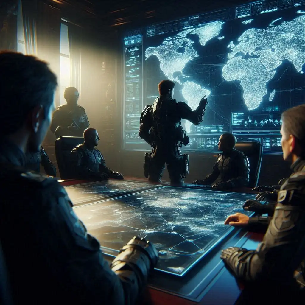 Valdren diseñó una trampa compleja: desplegarían cargas electromagnéticas para desactivar temporalmente las IAs acompañantes y acorralar a Goliat en una garganta rocosa estrecha. La topografía limitaría su movilidad, y los escuadrones usarían fuego concéntrico y minas térmicas inteligentes.